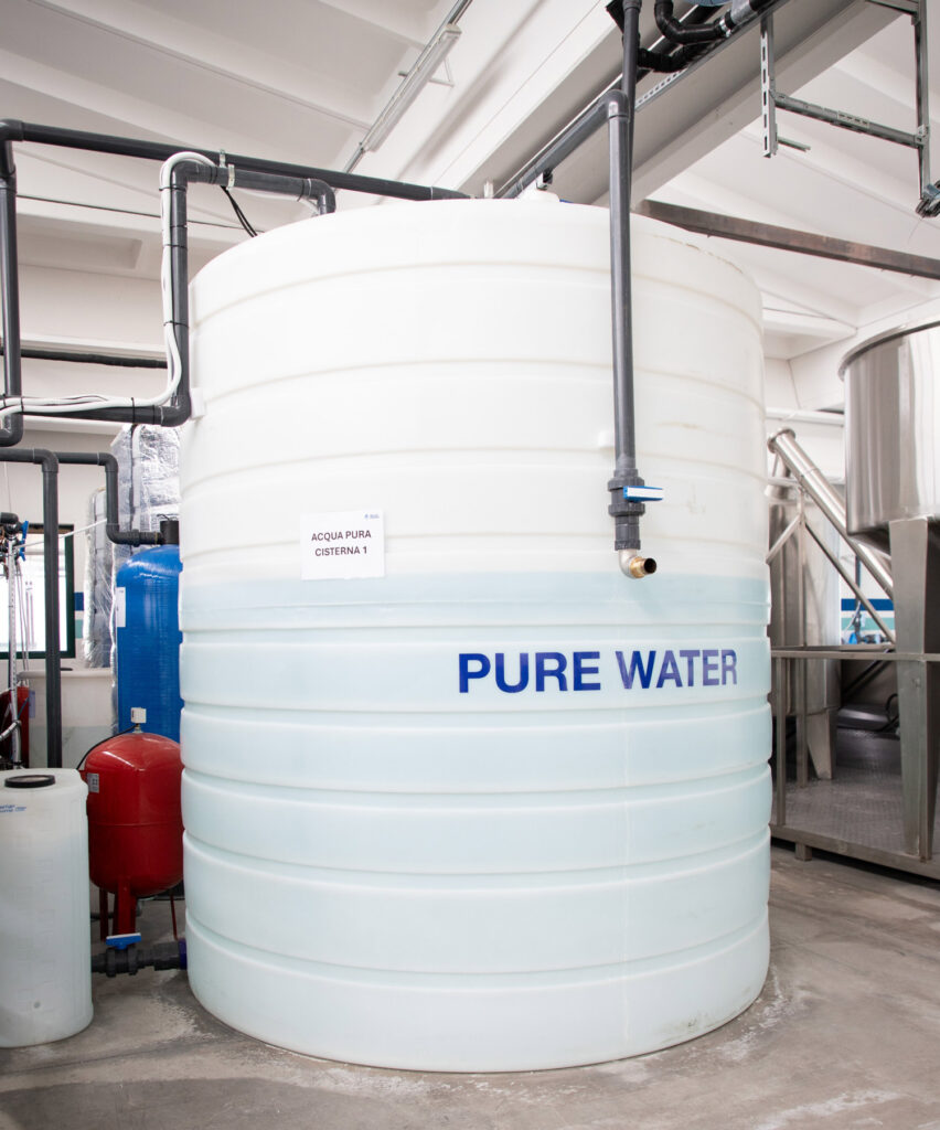 L’acqua utilizzata è il cuore del nostro processo produttivo. Viene sottoposta a un doppio trattamento osmotico, che consente di eliminare sali minerali, metalli pesanti e altre impurità.